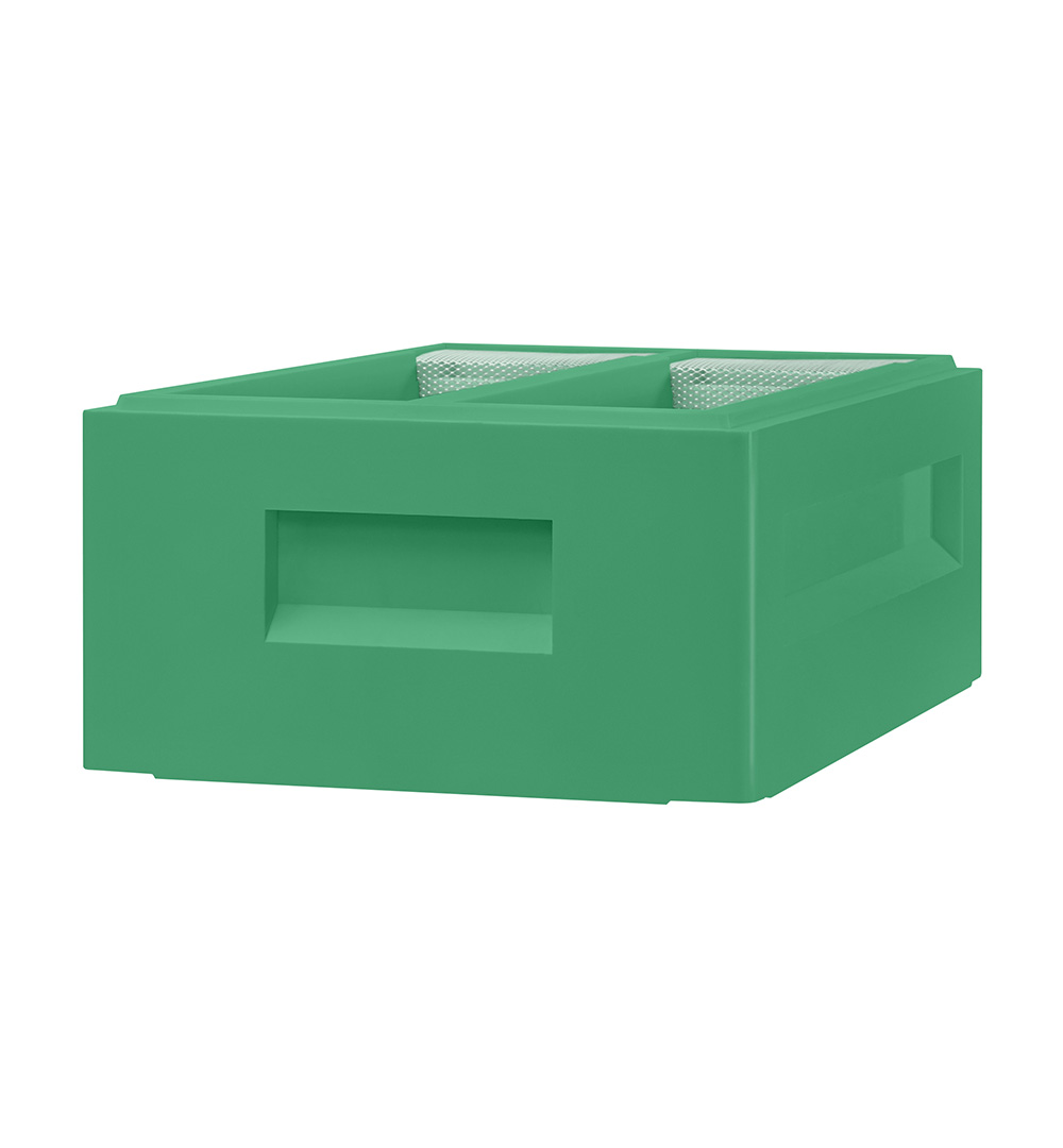 - Wgłębienia na uchwyty: Specjalne wgłębienia po obu stronach powałko-podkarmiaczki zapewniają pewny chwyt, co ułatwia przenoszenie i obsługę ula, minimalizując ryzyko wyślizgnięcia się elementu podczas pracy.